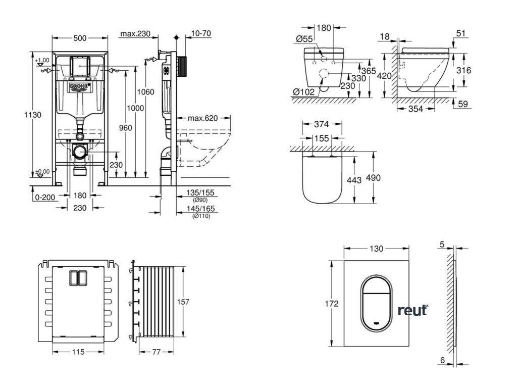 Grohe Rapid SL Set predstenovej inštalácie, klozetu, dosky SoftClose a tlačidla Arena Cosmopolitan S, Triple Vortex, kefovaný Hard Graphite SANI11BB5118-GR
