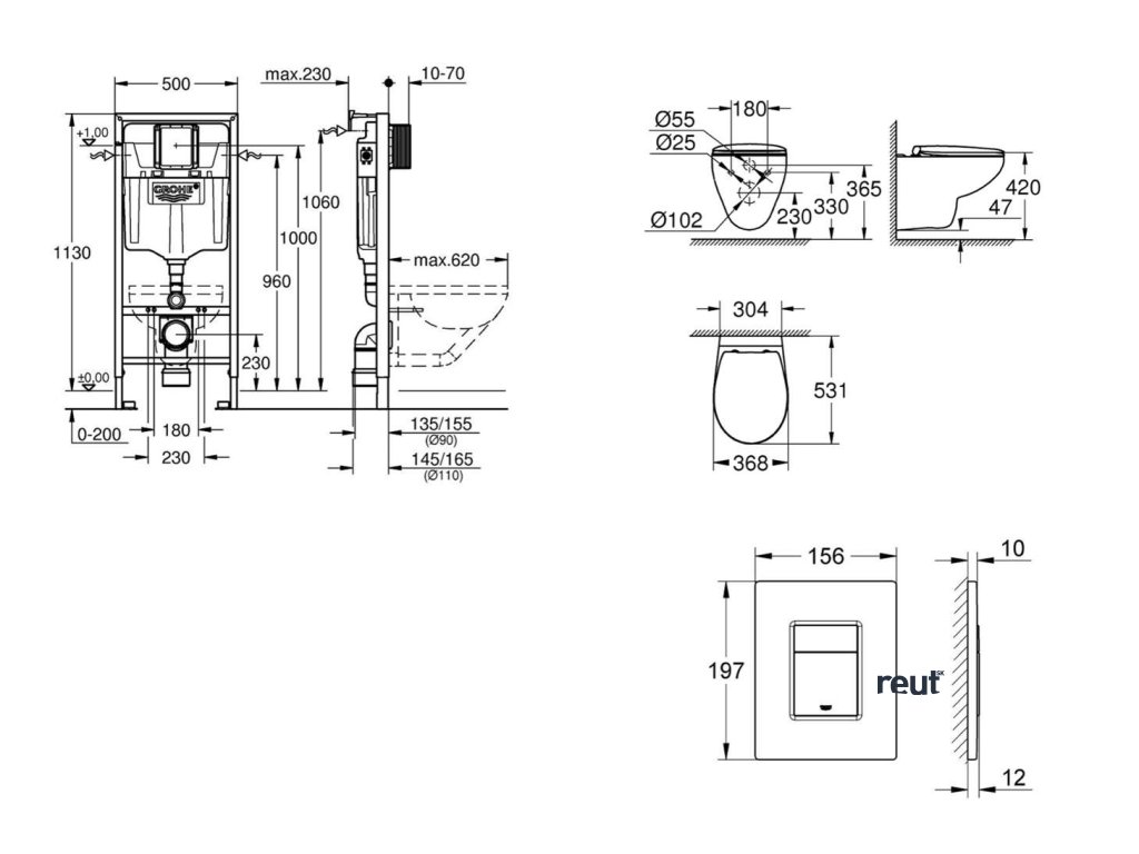 Grohe Rapid SL Set predstenovej inštalácie, klozetu, dosky SoftClose a tlačidla Skate Cosmopolitan, Cool Sunrise SANI11BB4122-GR