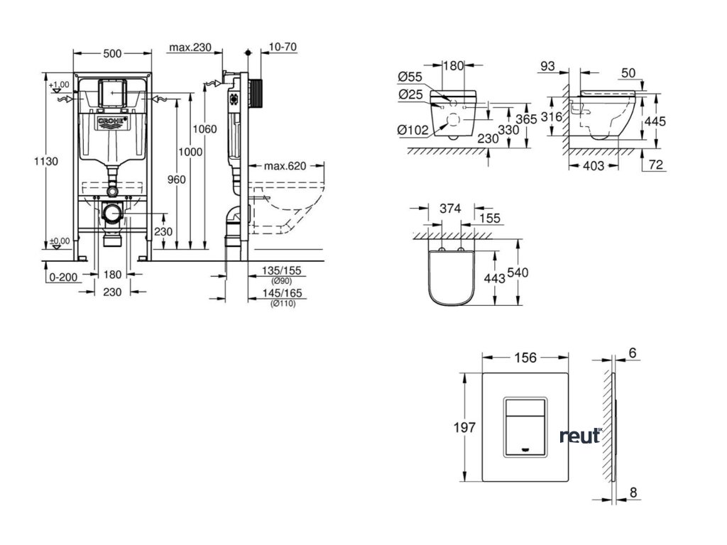 Grohe Rapid SL Set predstenovej inštalácie, klozetu, dosky SoftClose a tlačidla Skate Cosmopolitan, Moon White SANI11BB3127-GR
