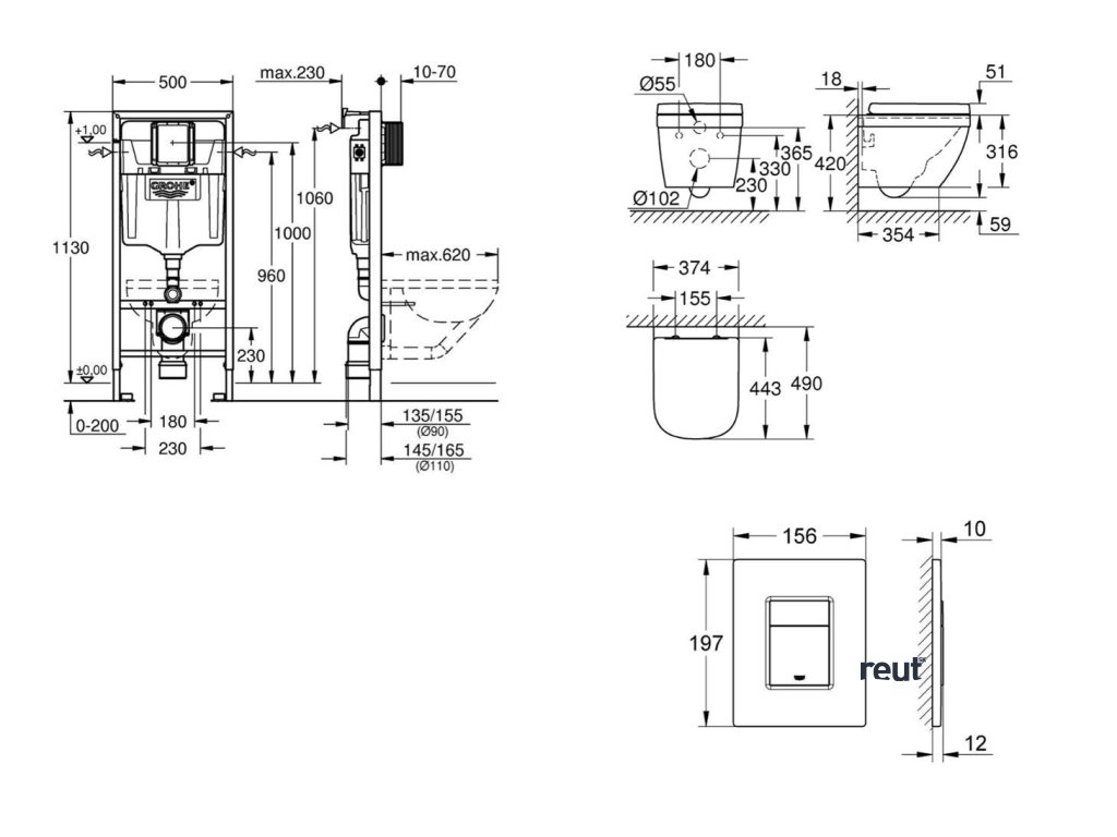 Grohe Rapid SL Set predstenovej inštalácie, klozetu, dosky SoftClose a tlačidla Skate Cosmopolitan, Triple Vortex, kefovaný Warm Sunset SANI11BB4128-GR