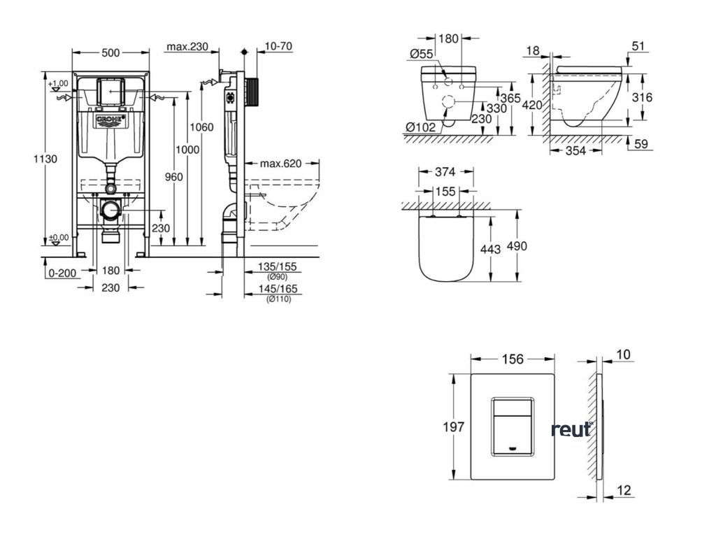 Grohe Rapid SL Set predstenovej inštalácie, klozetu, dosky SoftClose a tlačidla Skate Cosmopolitan, Triple Vortex, matný chróm SANI11BB2117-GR
