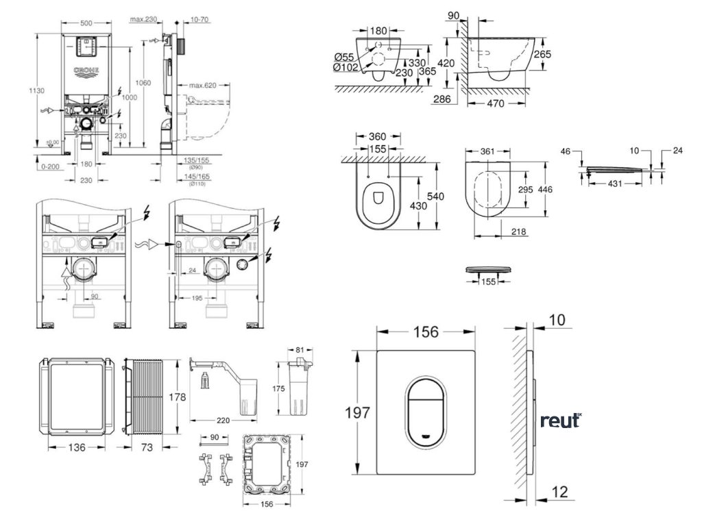 Grohe Rapid SLX Set predstenovej inštalácie, klozetu, dosky SoftClose, tlačidla Arena Cosmopolitan a súpravy na vhadzovanie tabliet, alpská biela SANI11BB3143-GR