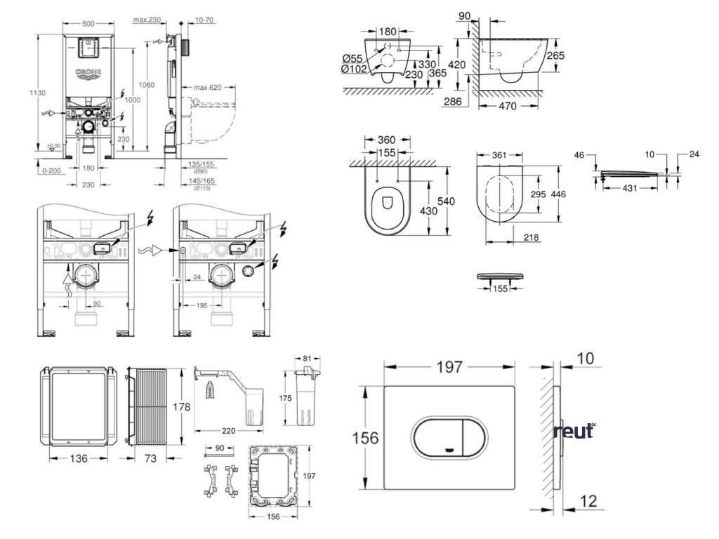 Grohe Rapid SLX Set predstenovej inštalácie, klozetu, dosky SoftClose, tlačidla Arena Cosmopolitan a súpravy na vhadzovanie tabliet, alpská biela SANI11BB3144-GR