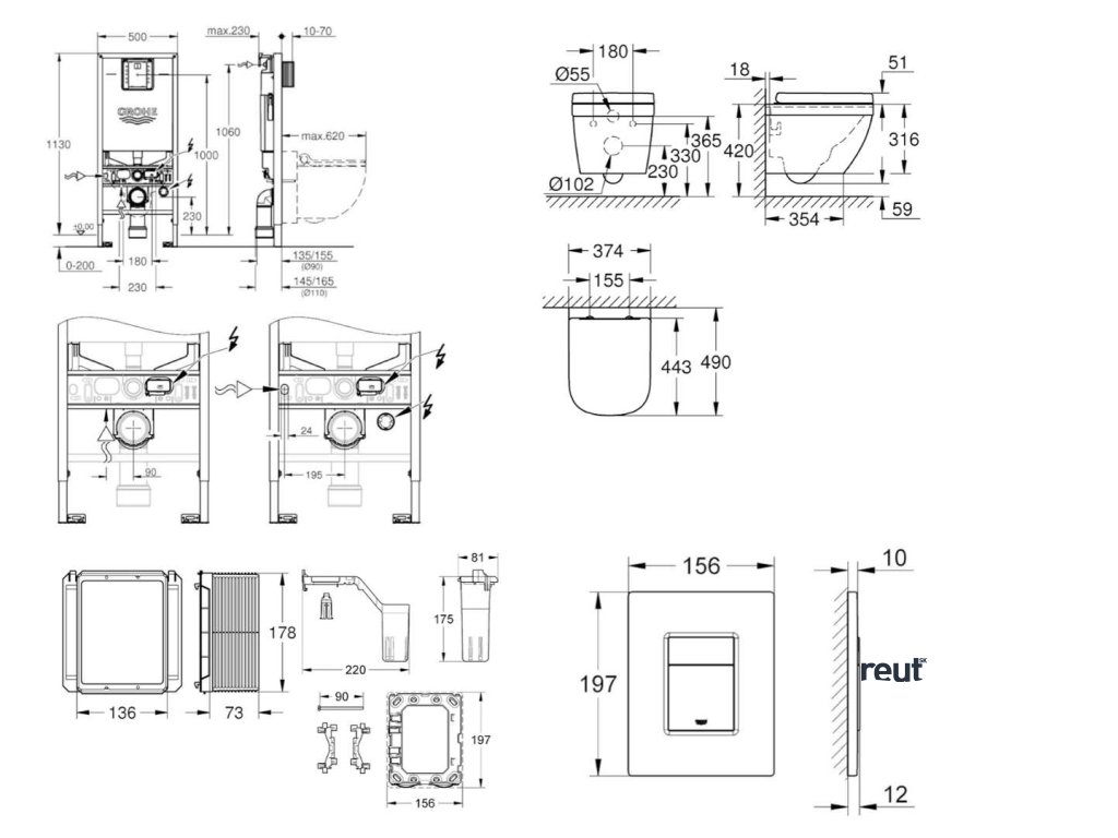 Grohe Rapid SLX Set predstenovej inštalácie, klozetu, dosky SoftClose, tlačidla Skate Cosmopolitan a súpravy na vhadzovanie tabliet, Triple Vortex, chróm SANI11BB2127-GR