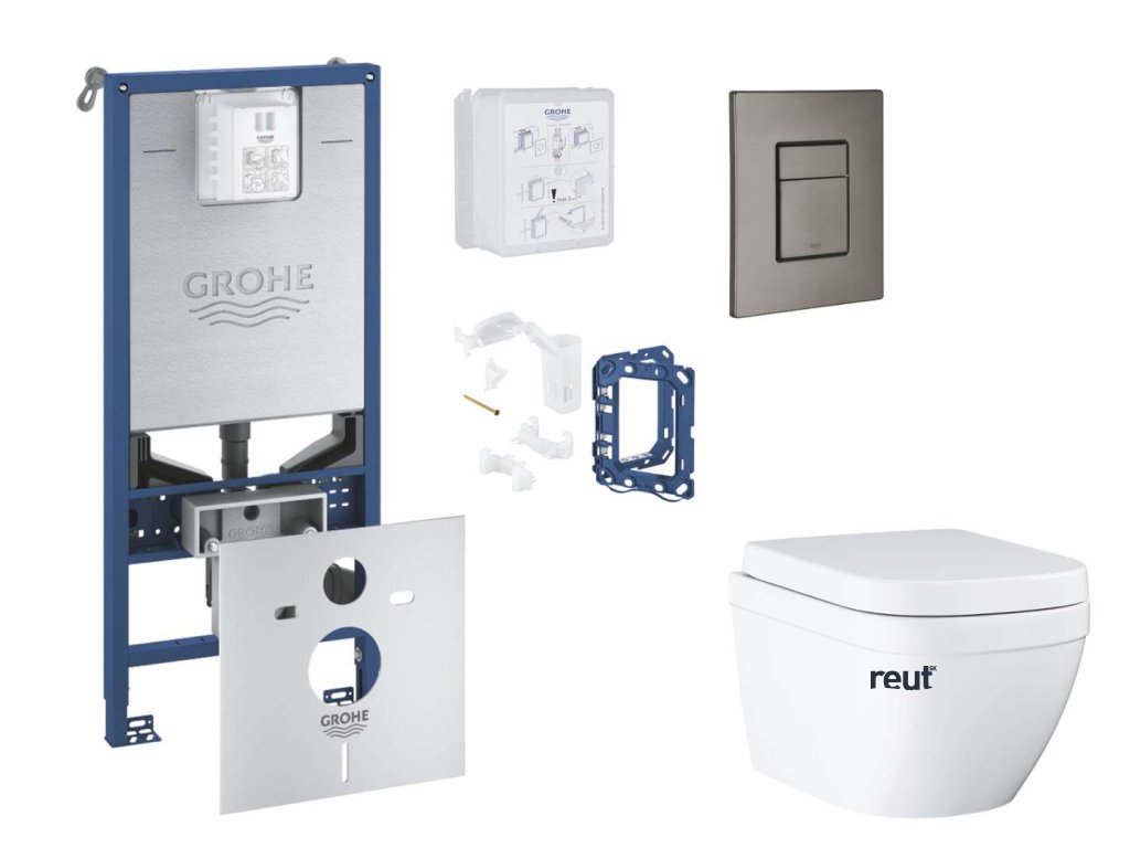 Grohe Rapid SLX Set predstenovej inštalácie, klozetu, dosky SoftClose, tlačidla Skate Cosmopolitan a súpravy na vhadzovanie tabliet, Triple Vortex, kefovaný Hard Graphite SANI11BB5128-GR