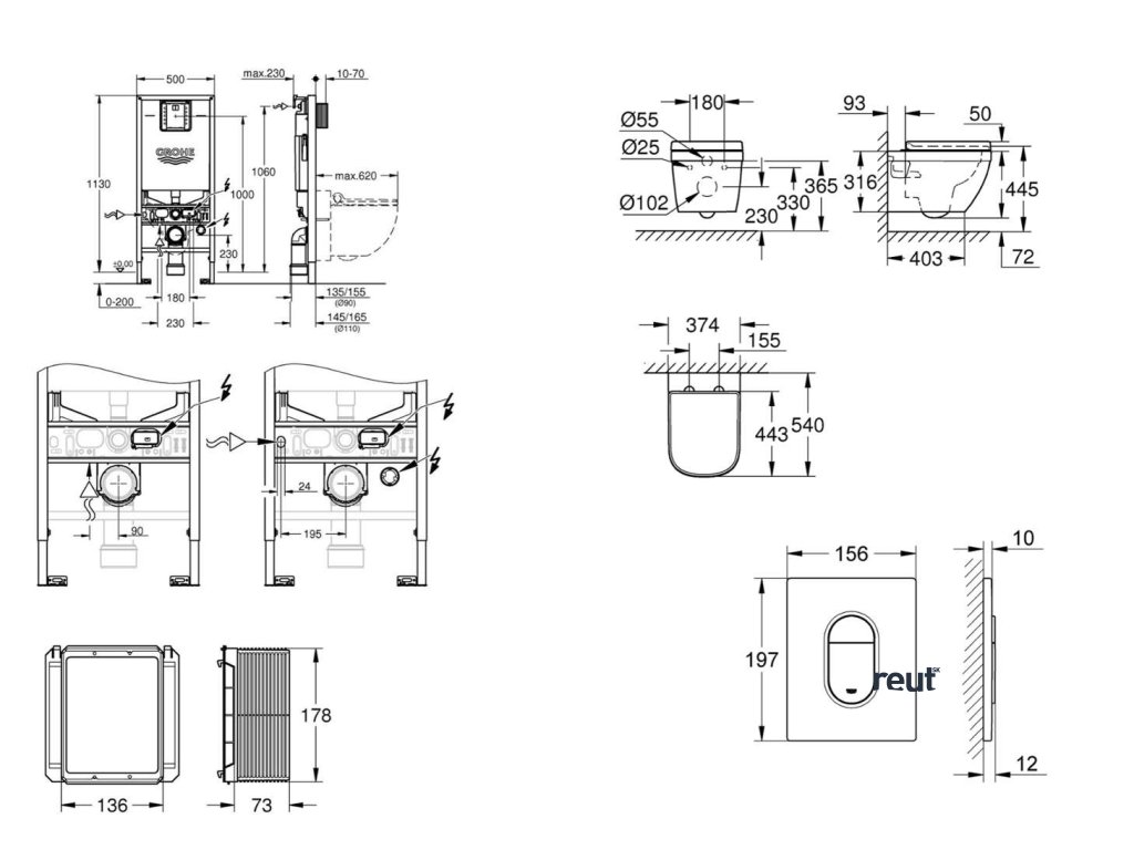 Grohe Rapid SLX Set predstenovej inštalácie, klozetu, dosky SoftClose a tlačidla Arena Cosmopolitan, alpská biela SANI11BB3110-GR
