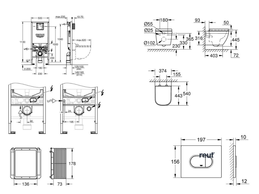 Grohe Rapid SLX Set predstenovej inštalácie, klozetu, dosky SoftClose a tlačidla Arena Cosmopolitan, alpská biela SANI11BB3112-GR