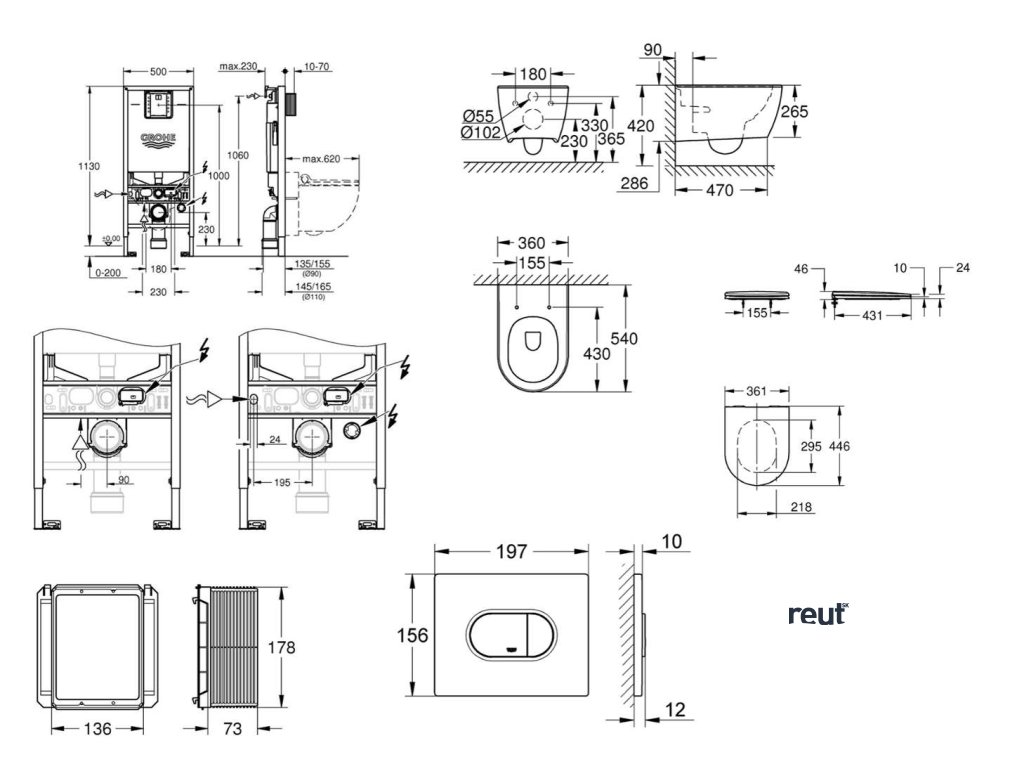 Grohe Rapid SLX Set predstenovej inštalácie, klozetu, dosky SoftClose a tlačidla Arena Cosmopolitan, alpská biela SANI11BB3116-GR
