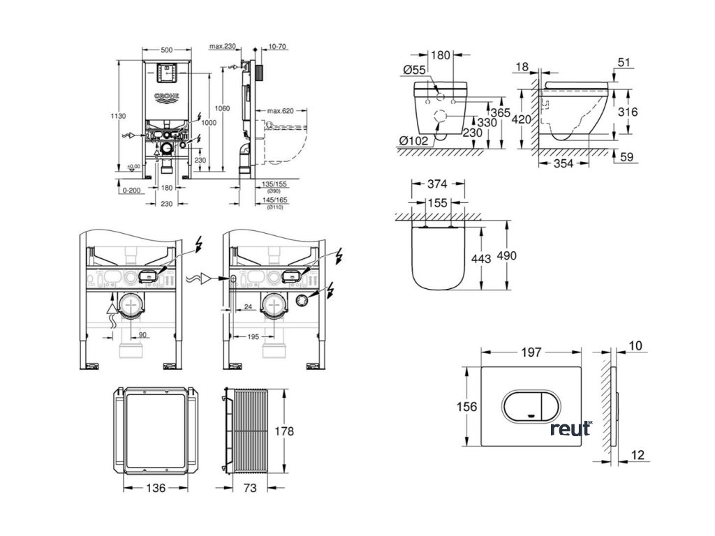 Grohe Rapid SLX Set predstenovej inštalácie, klozetu, dosky SoftClose a tlačidla Arena Cosmopolitan, Triple Vortex, alpská biela SANI11BB3108-GR