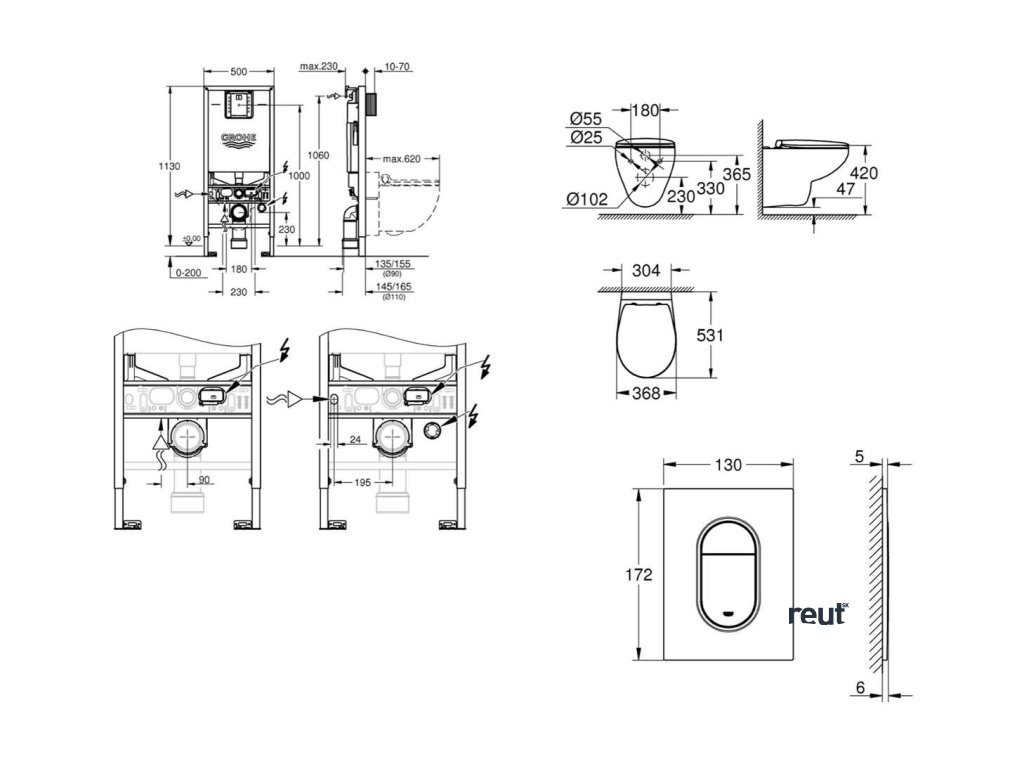 Grohe Rapid SLX Set predstenovej inštalácie, klozetu, dosky SoftClose a tlačidla Arena Cosmopolitan S, kefovaný Cool Sunrise SANI11BB4104-GR