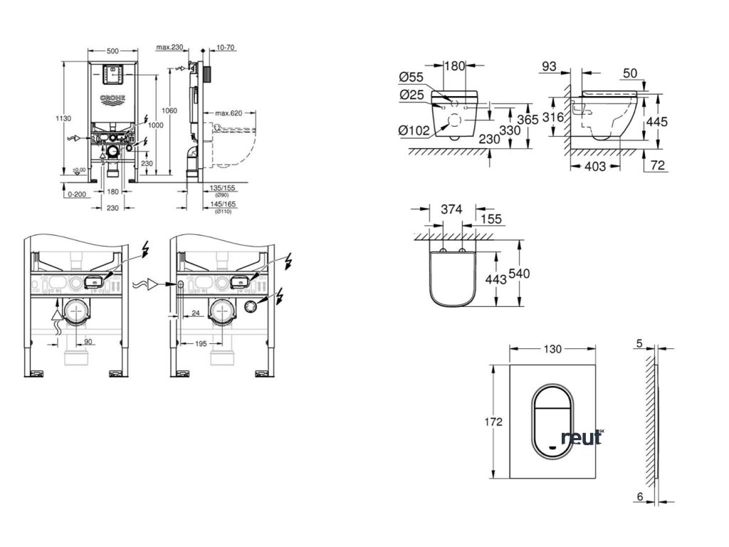 Grohe Rapid SLX Set predstenovej inštalácie, klozetu, dosky SoftClose a tlačidla Arena Cosmopolitan S, kefovaný Hard Graphite SANI11BB5109-GR