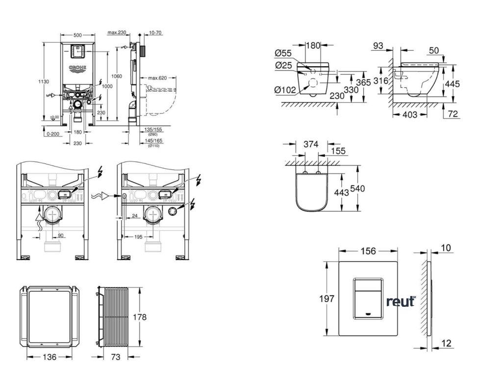 Grohe Rapid SLX Set predstenovej inštalácie, klozetu, dosky SoftClose a tlačidla Skate Cosmopolitan, kefovaná nerezová oceľ SANI11BB2109-GR