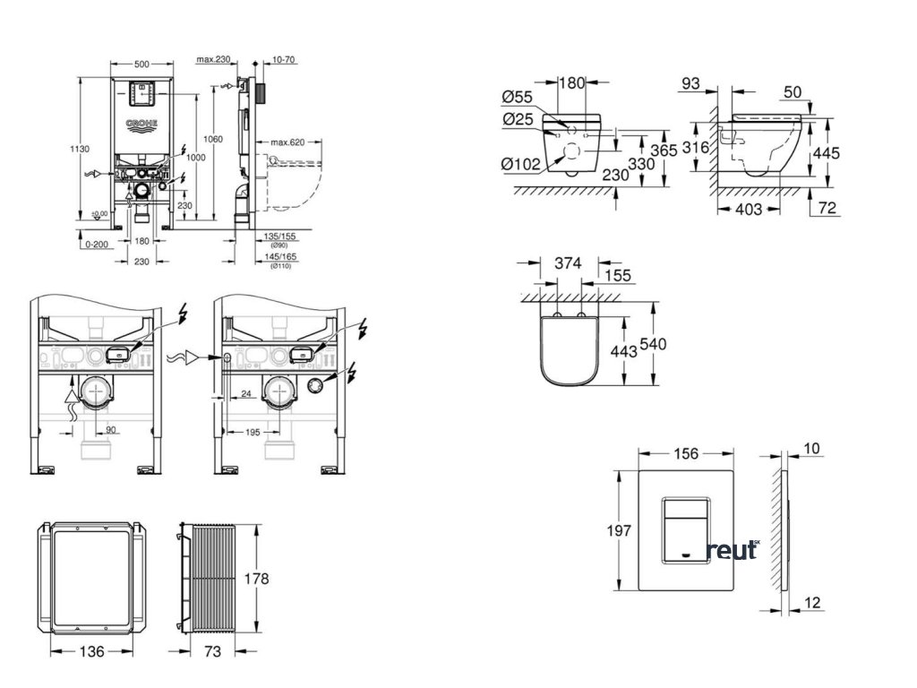 Grohe Rapid SLX Set predstenovej inštalácie, klozetu, dosky SoftClose a tlačidla Skate Cosmopolitan, kefovaný Hard Graphite SANI11BB5108-GR