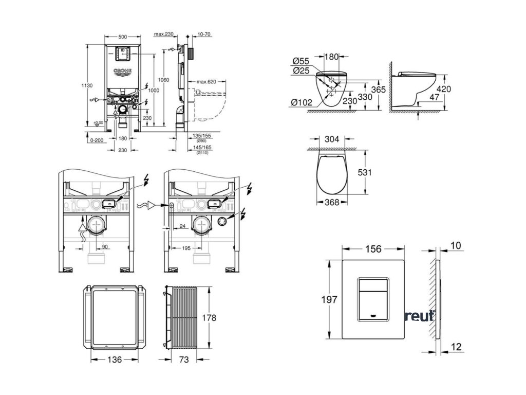 Grohe Rapid SLX Set predstenovej inštalácie, klozetu, dosky SoftClose a tlačidla Skate Cosmopolitan, kefovaný Warm Sunset SANI11BB4103-GR