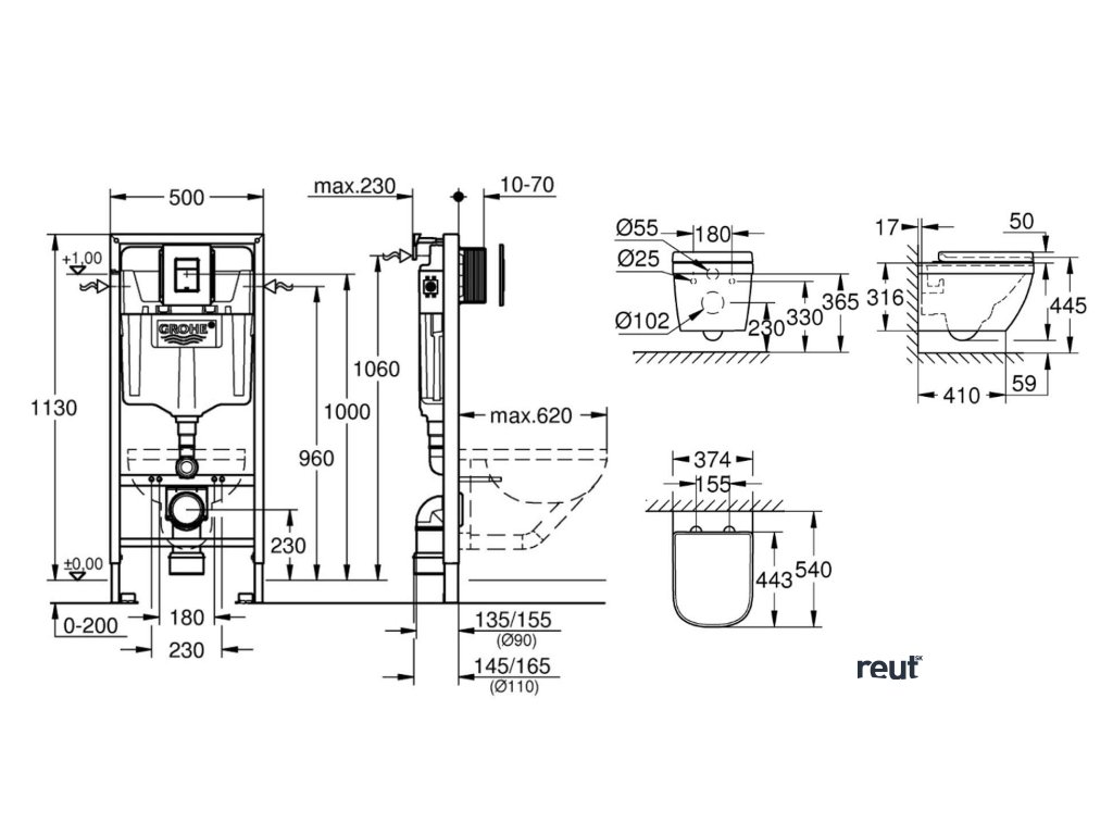 Grohe Solido Set predstenovej inštalácie, klozetu a dosky Euro Ceramic, SoftClose, Triple Vortex, tlačidlo Even, chróm SANI15BB1105-GR