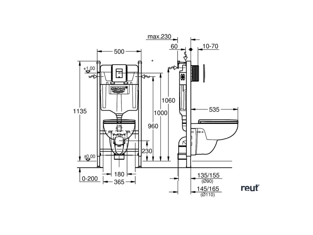 Grohe Solido Set predstenovej inštalácie, klozetu Edge Ceramic a dosky softclose, tlačidlo Even, chróm 39816000-GR