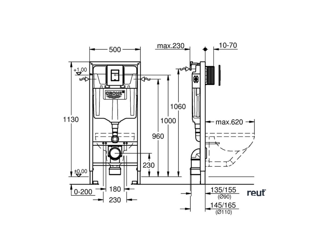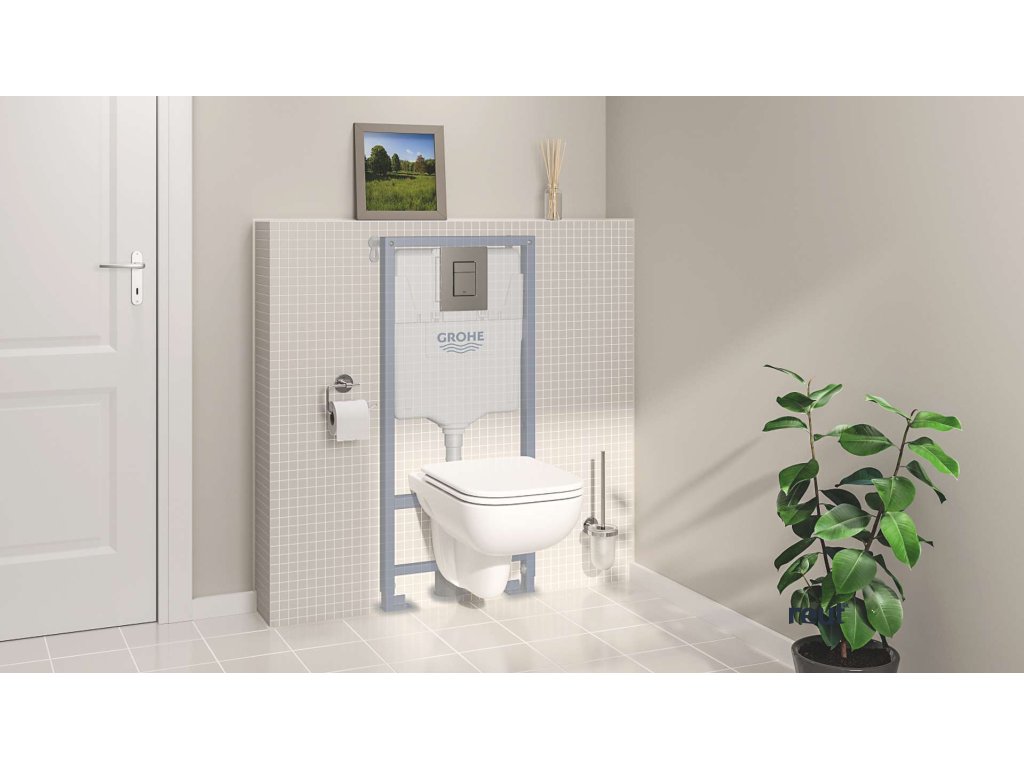 Grohe Solido Set predstenovej inštalácie, klozetu Edge Ceramic a dosky softclose, tlačidlo Even, chróm 39817000-GR