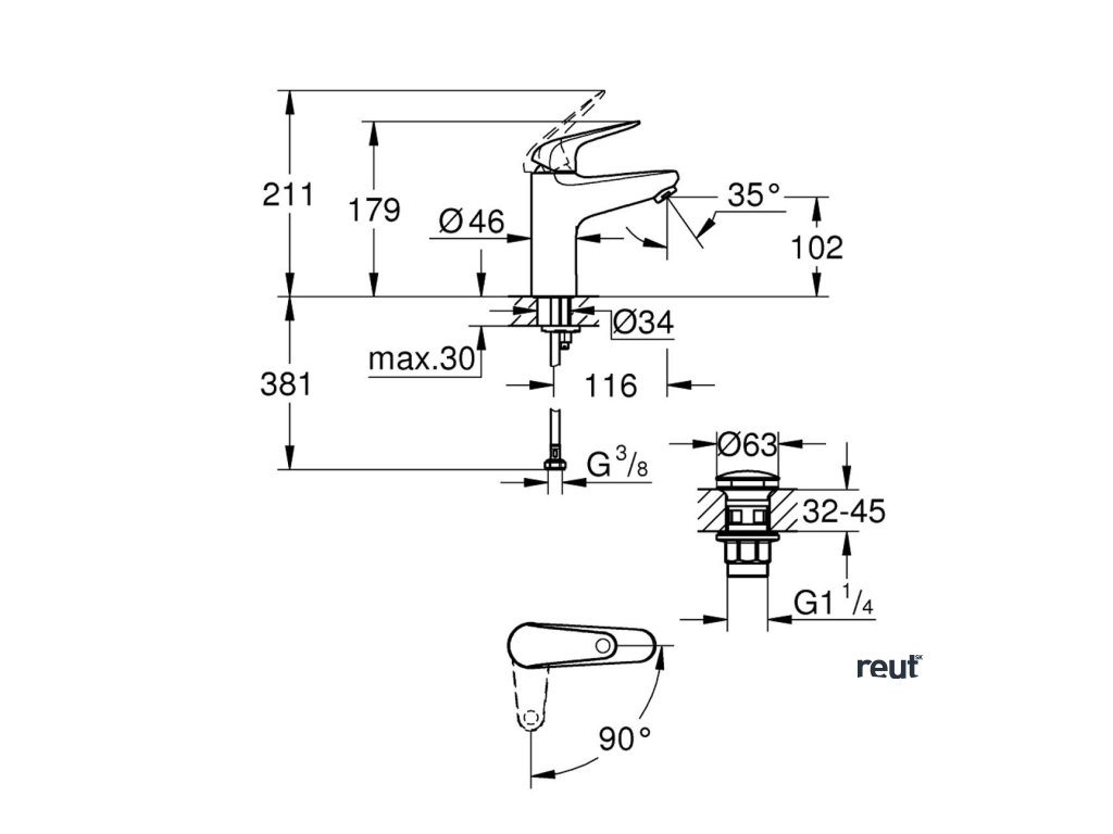 Grohe Swift Umývadlová batéria s výpusťou Push-Open, studený štart, chróm 24329001-GR