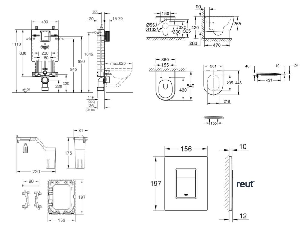 Grohe Uniset Set predstenovej inštalácie, klozetu, dosky SoftClose, tlačidla Skate Cosmopolitan a súpravy na vhadzovanie tabliet, matný chróm SANI15BB2120-GR