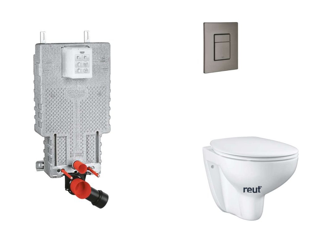 Grohe Uniset Set predstenovej inštalácie, klozetu, dosky SoftClose a tlačidla Skate Cosmopolitan, kefovaný Hard Graphite SANI15BB5102-GR