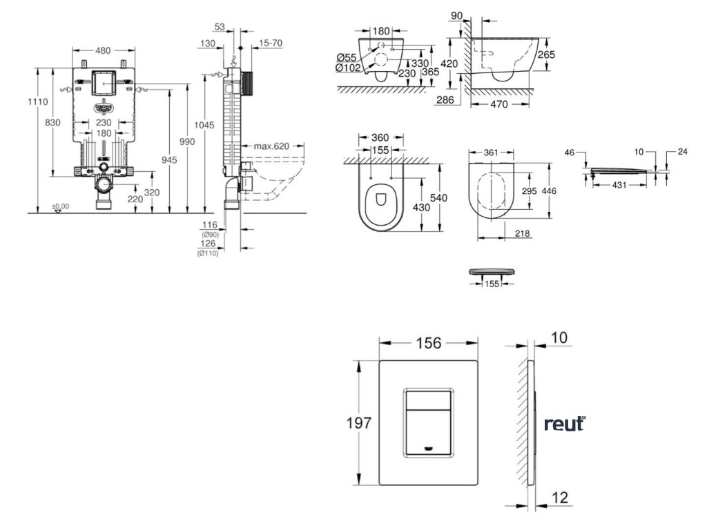 Grohe Uniset Set predstenovej inštalácie, klozetu, dosky SoftClose a tlačidla Skate Cosmopolitan, kefovaný Warm Sunset SANI15BB4118-GR