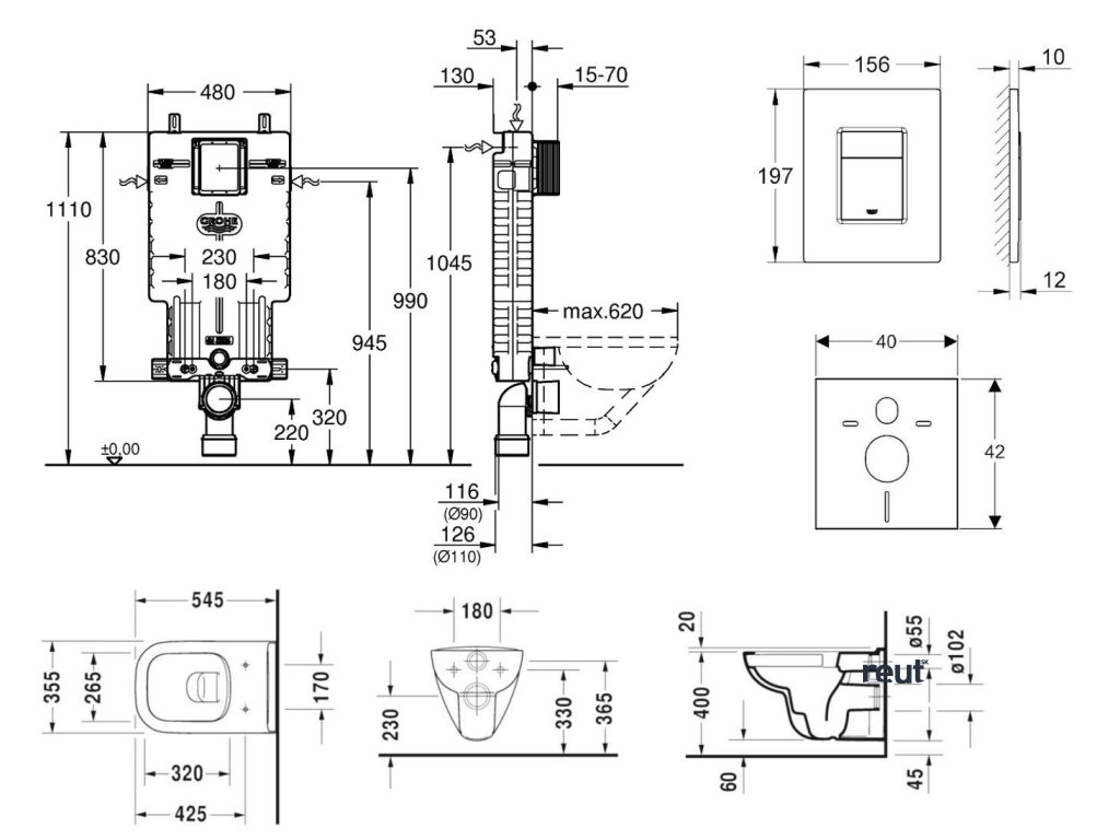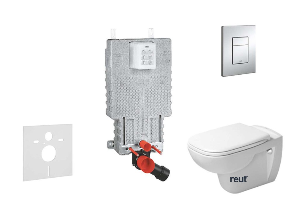 Grohe Uniset Set predstenovej inštalácie, klozetu a sedadla D-Code, Rimless, SoftClose, tlačidla Skate Cosmo, chróm 38643SET-KK-GR