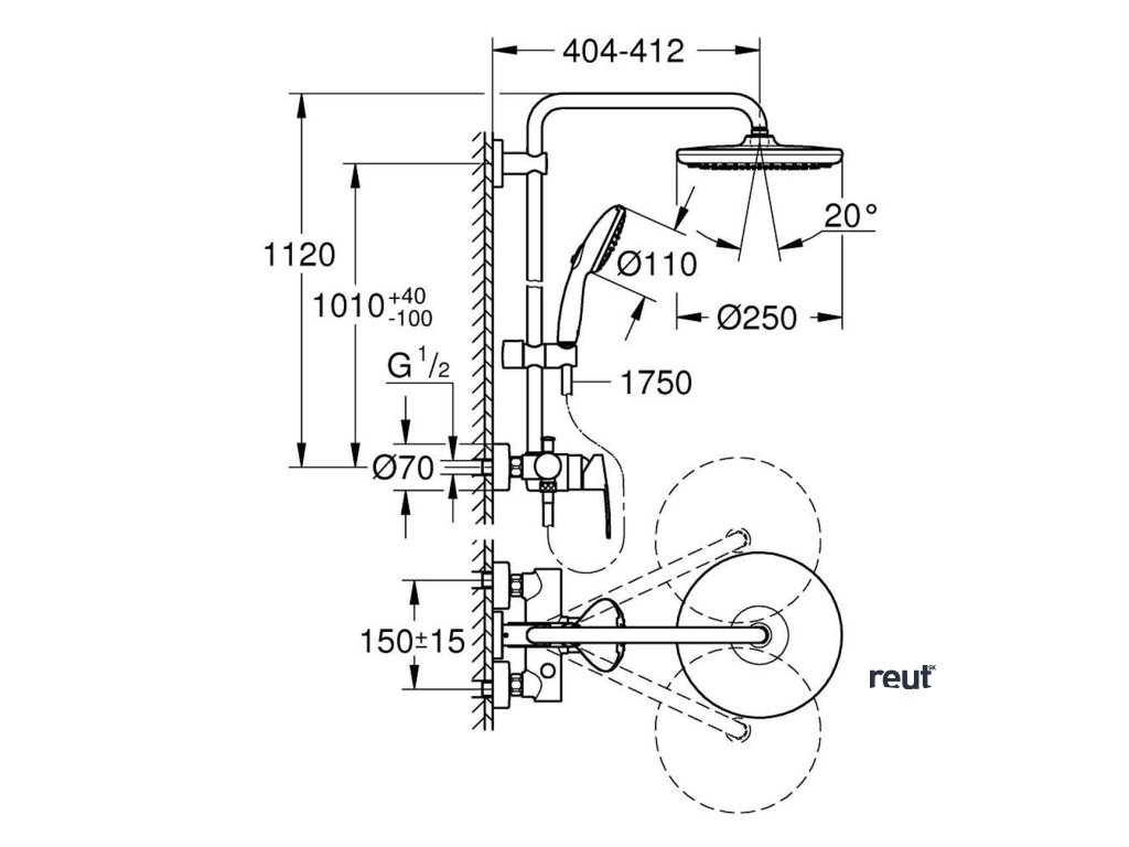 Grohe Vitalio Start Sprchový set s batériou, priemer 25 cm, 2 prúdy, chróm 26679001-GR