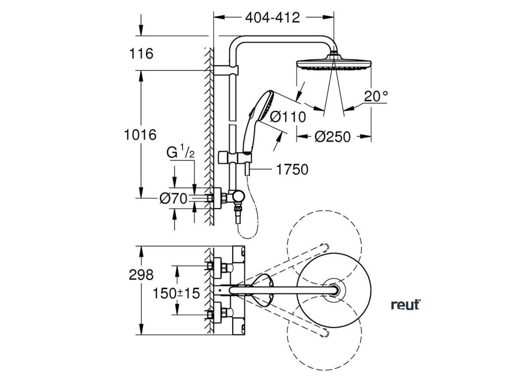 Grohe Vitalio Start Sprchový set s termostatom, priemer 25 cm, 2 prúdy, matná čierna 266772431-GR