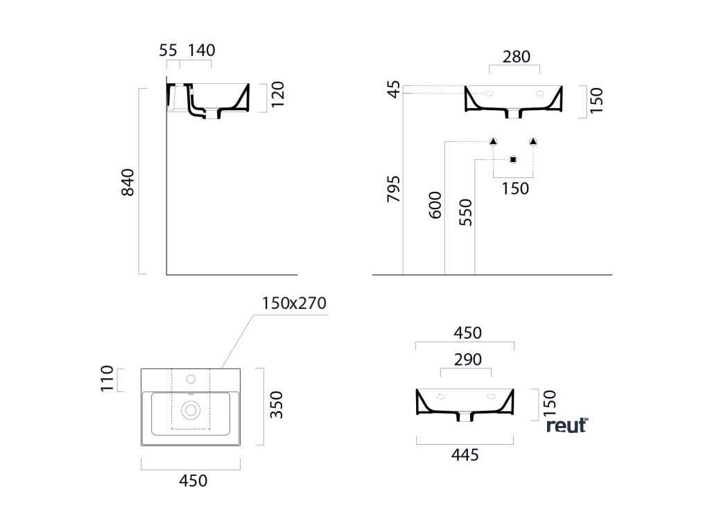 GSI KUBE X COLOR KUBE X keramické umývadlo 45x35cm, čierna mat 9485126