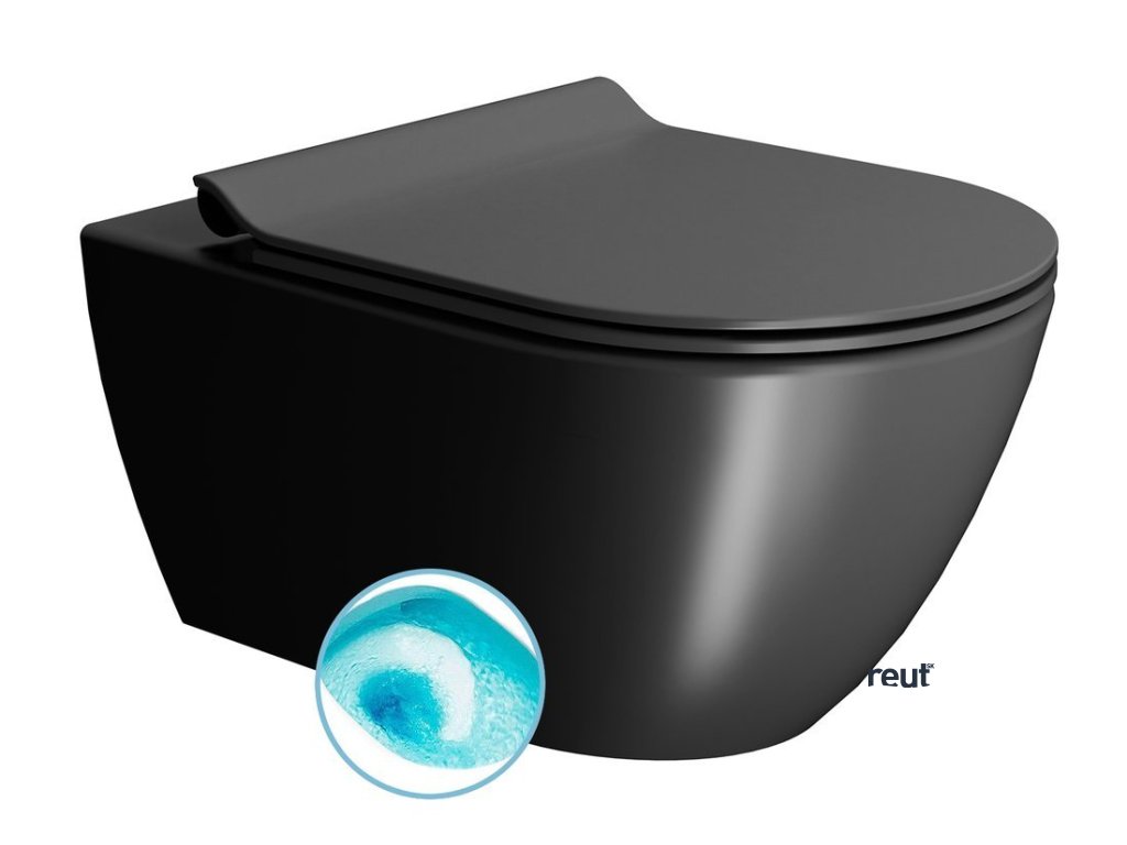 GSI COLOR ELEMENTS PURA závesná WC misa, Swirlflush, 36x55 cm, čierna dual-mat 881526