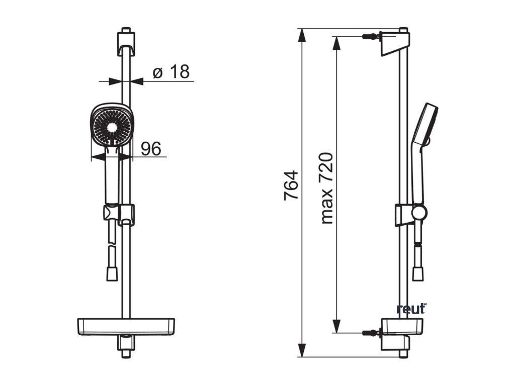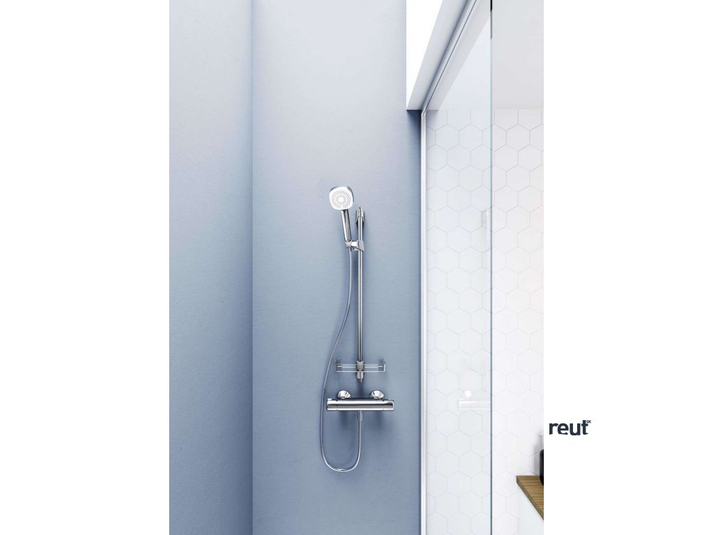 Hansa Basicjet Set sprchovej hlavice, 3 prúdy, hadice a tyče s poličkou, chróm 44770131