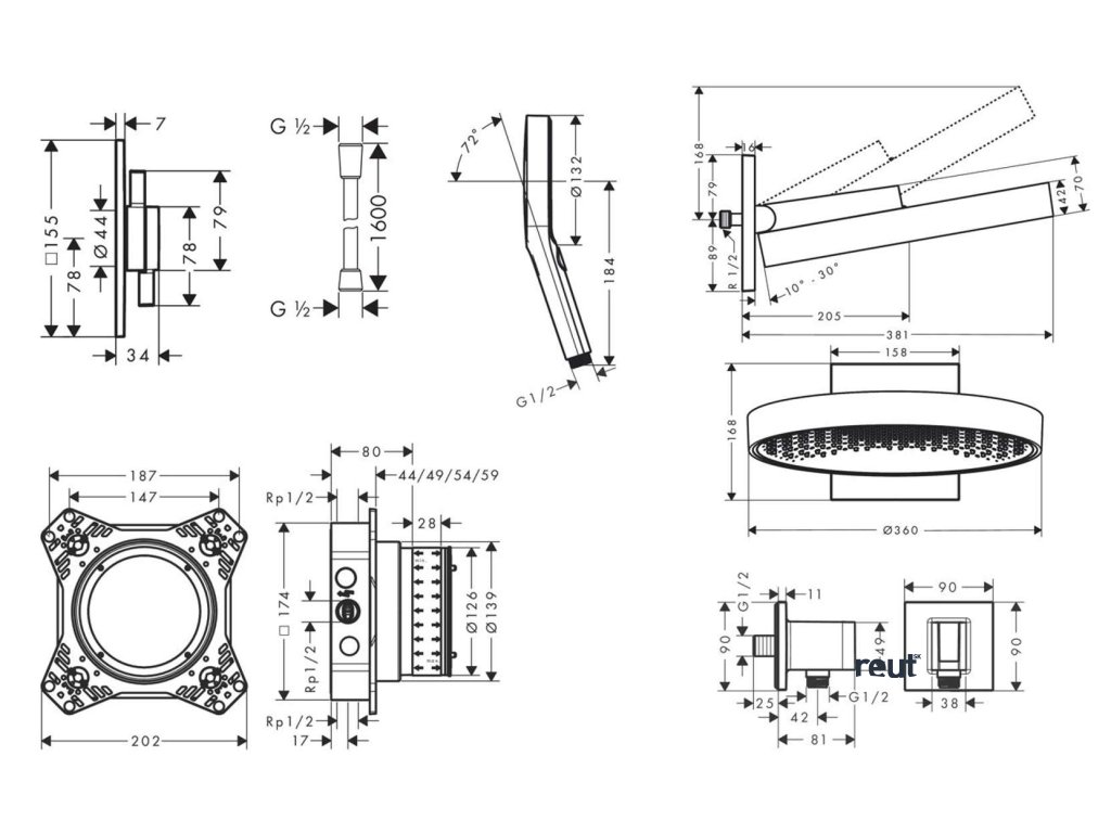 Hansgrohe Sprchový set s batériou pod omietku, s telesom, priemer 36 cm, 3 prúdy, chróm SANI21HHH009-HG