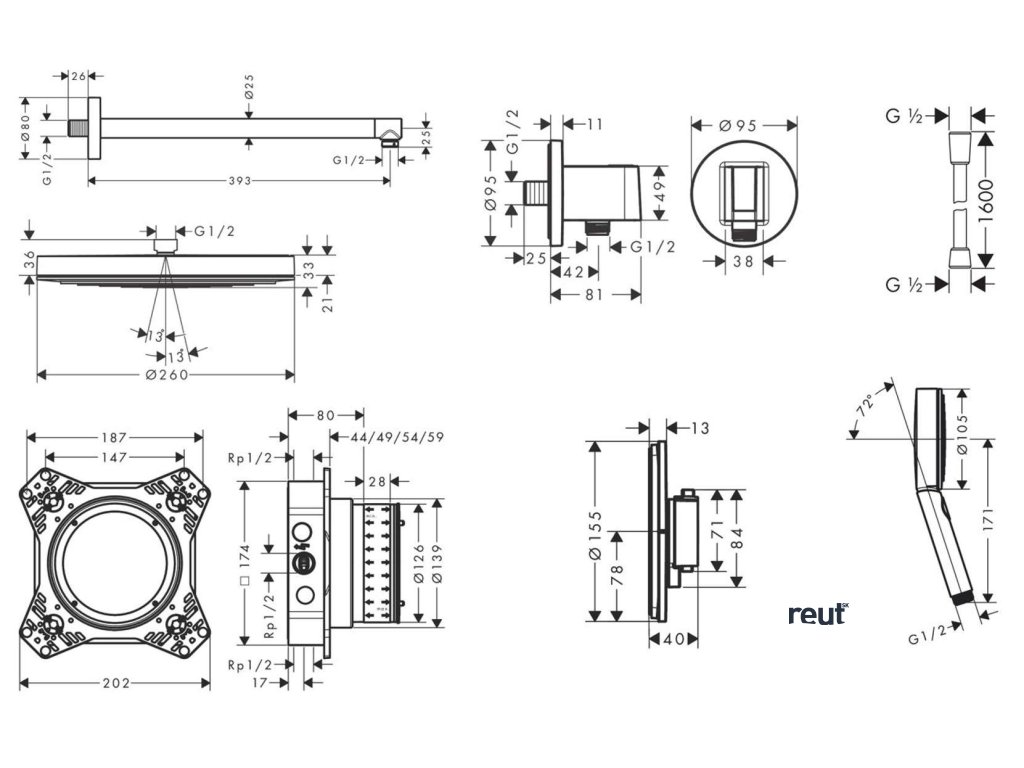 Hansgrohe Sprchový set s termostatom pod omietku, s telesom, priemer 26 cm, 3 prúdy, matná čierna SANI21HHH402-HG