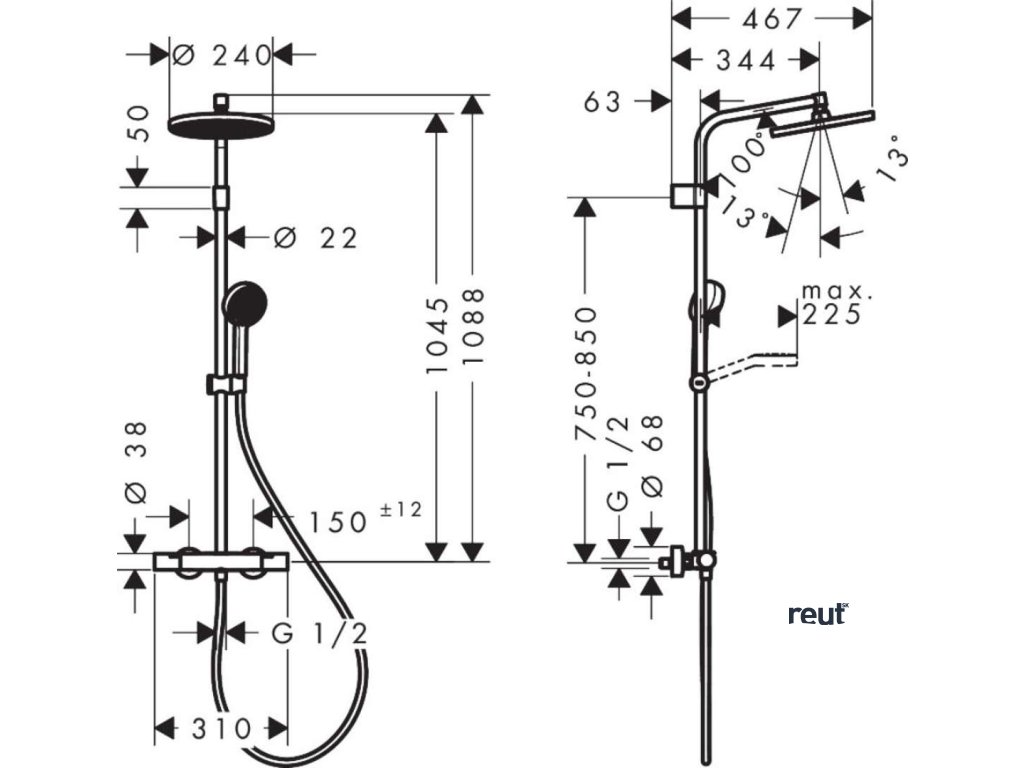 Hansgrohe Activera S Sprchový set s termostatom, priemer 24 cm, 2 prúdy, EcoSmart, chróm 28078000-HG