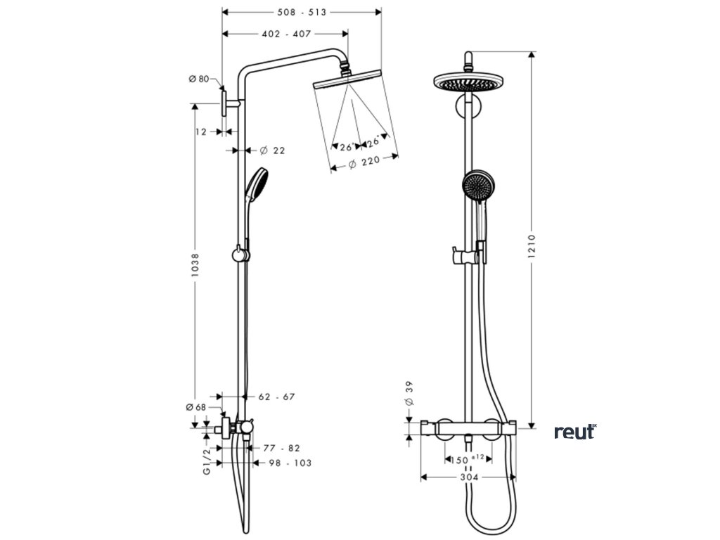 Hansgrohe Croma 220 Sprchový set Showerpipe s termostatom, 22 cm, 4 prúdy, EcoSmart 9 l/min, chróm 27188000-HG