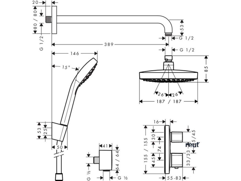 Hansgrohe Croma Select E Sprchový set 180 s termostatom Ecostat E, 2 prúdy, chróm 27294000-HG