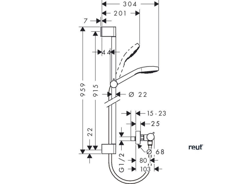 Hansgrohe Croma Select S Sprchový set Vario s termostatom, 3 prúdy, sprchová tyč 90 cm, biela/chróm 27014400-HG