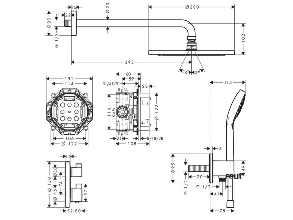 Hansgrohe Croma Sprchový set 280, s termostatom Ecostat S pod omietku, chróm 27954000-HG