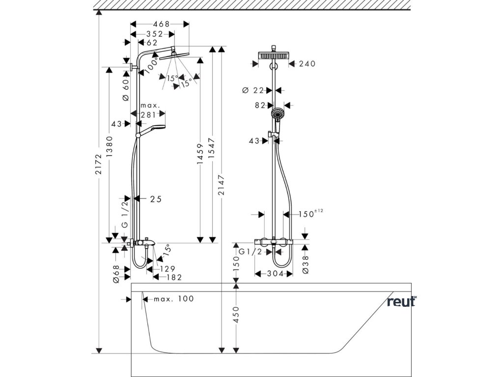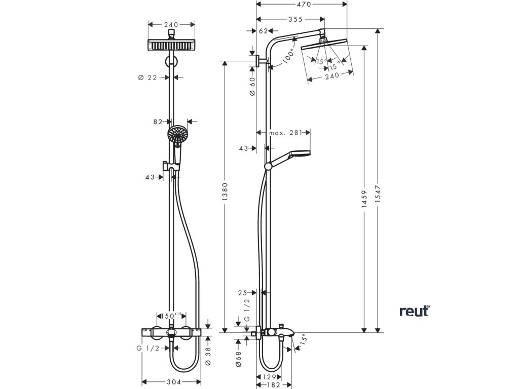 Hansgrohe Crometta Set Showerpipe E 240 s vaňovým termostatom, 2 prúdy, chróm 27298000-HG