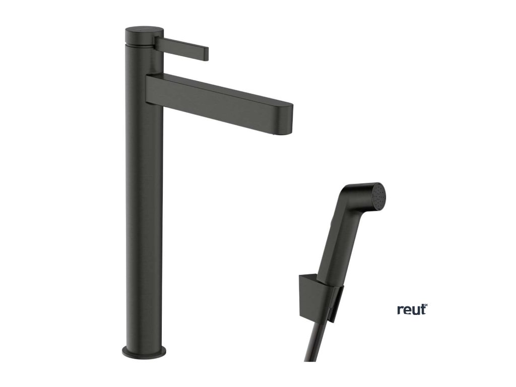 Hansgrohe Finoris Umývadlová batéria s výpusťou Push-Open a bidetovou spŕškou, EcoSmart, kefovaný čierny chróm 76220340-HG