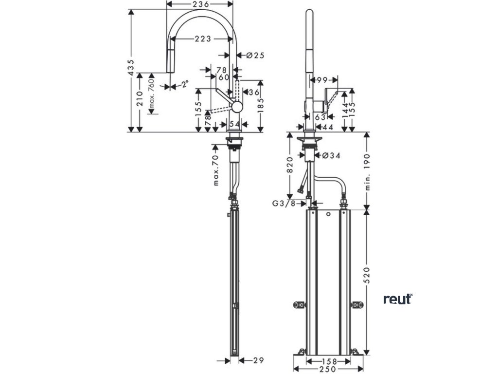 Hansgrohe M54 Drezová batéria Talis s výsuvnou koncovkou, sBox, matná čierna 72803670-HG