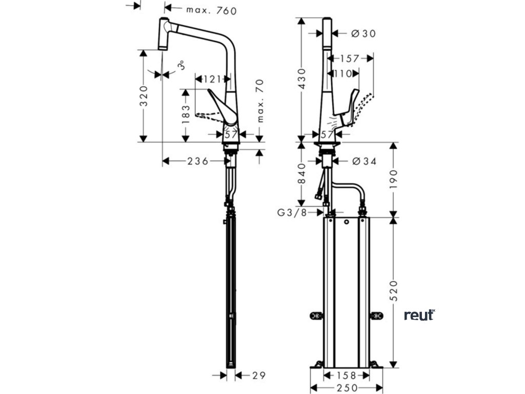 Hansgrohe M71 Drezová batéria M7116-H320 s výsuvnou spŕškou, sBOX, vzhľad nehrdzavejúcej ocele 73801800-HG