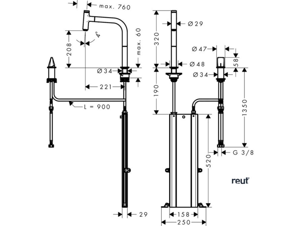 Hansgrohe M71 Drezová batéria M7119-H200 s výsuvnou spŕškou, 2-otvorová inštalácia, sBOX, vzhľad nerezový 73804800-HG