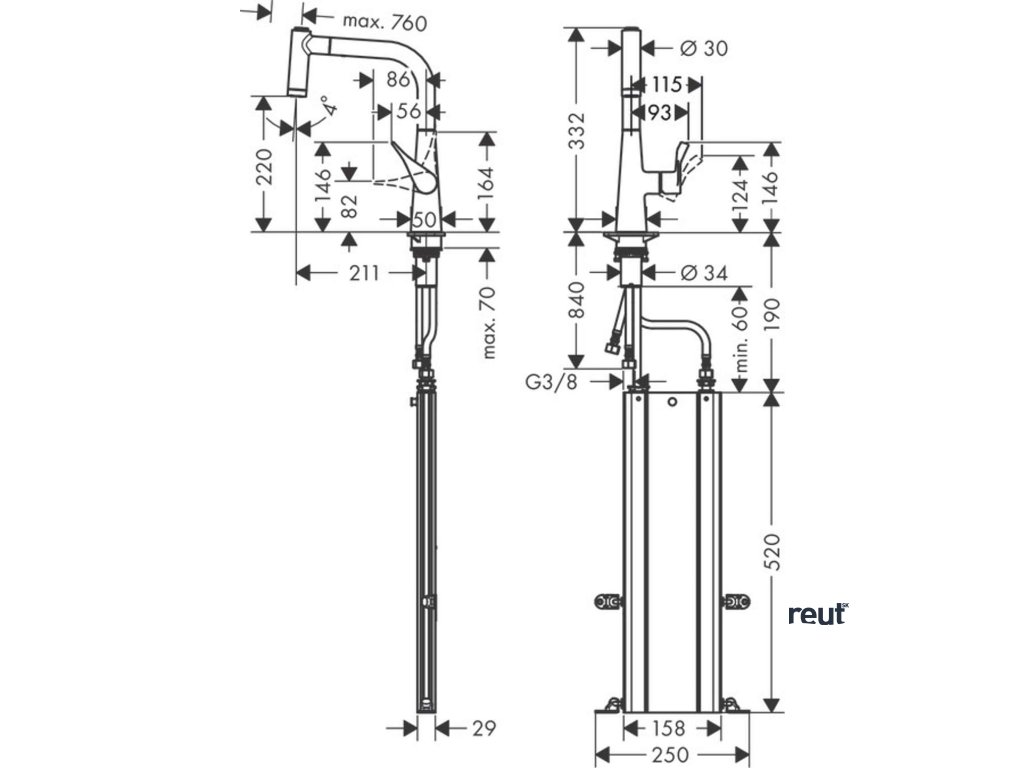 Hansgrohe M71 Drezová batéria Metris s výsuvnou spŕškou, sBox, EcoSmart, chróm 73823000-HG