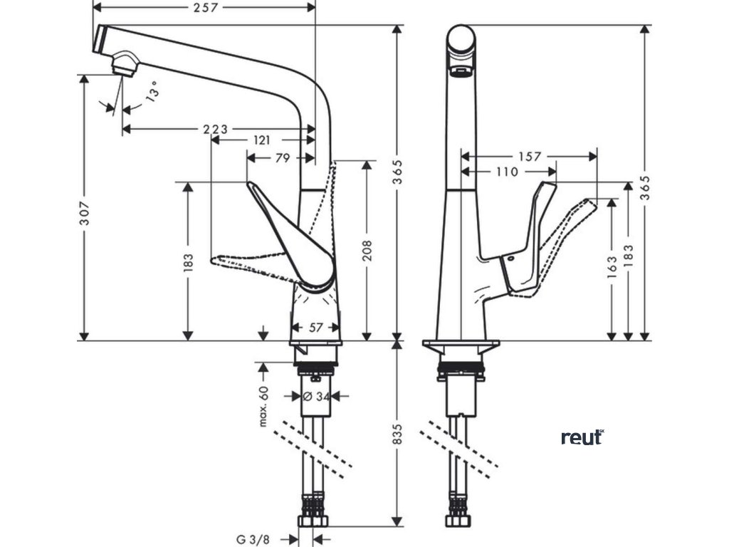 Hansgrohe M71 Drezová batéria Metris Select, EcoSmart, chróm 14785000-HG