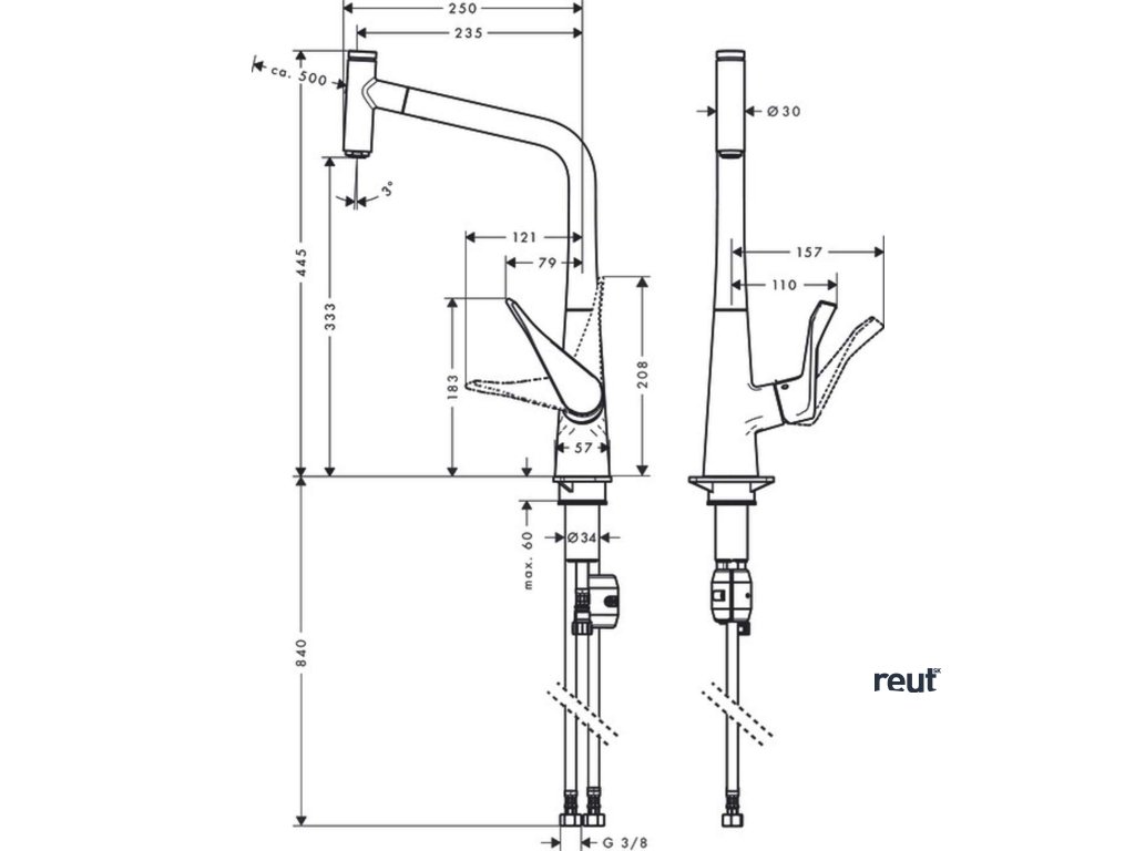 Hansgrohe M71 Drezová batéria Metris Select s výsuvnou koncovkou, EcoSmart, chróm 14786000-HG