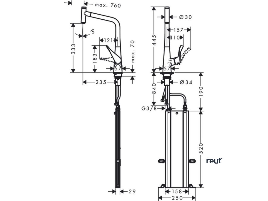 Hansgrohe M71 Drezová batéria Metris Select s výsuvnou koncovkou, sBox, EcoSmart, chróm 73807000-HG