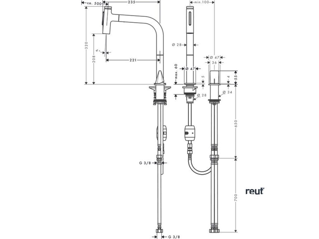 Hansgrohe M71 Drezová batéria Metris Select s výsuvnou spŕškou, 2-otvorová inštalácia, chróm 73819000-HG