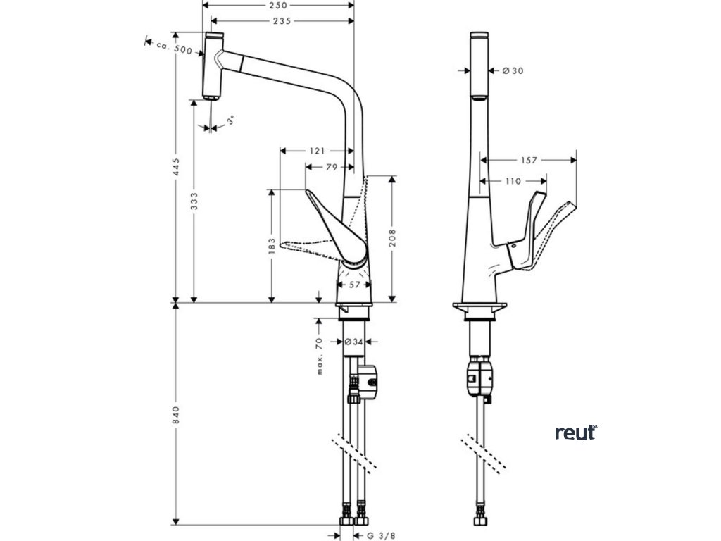 Hansgrohe Metris Select Drezová batéria s výsuvnou koncovkou, chróm 14884000-HG