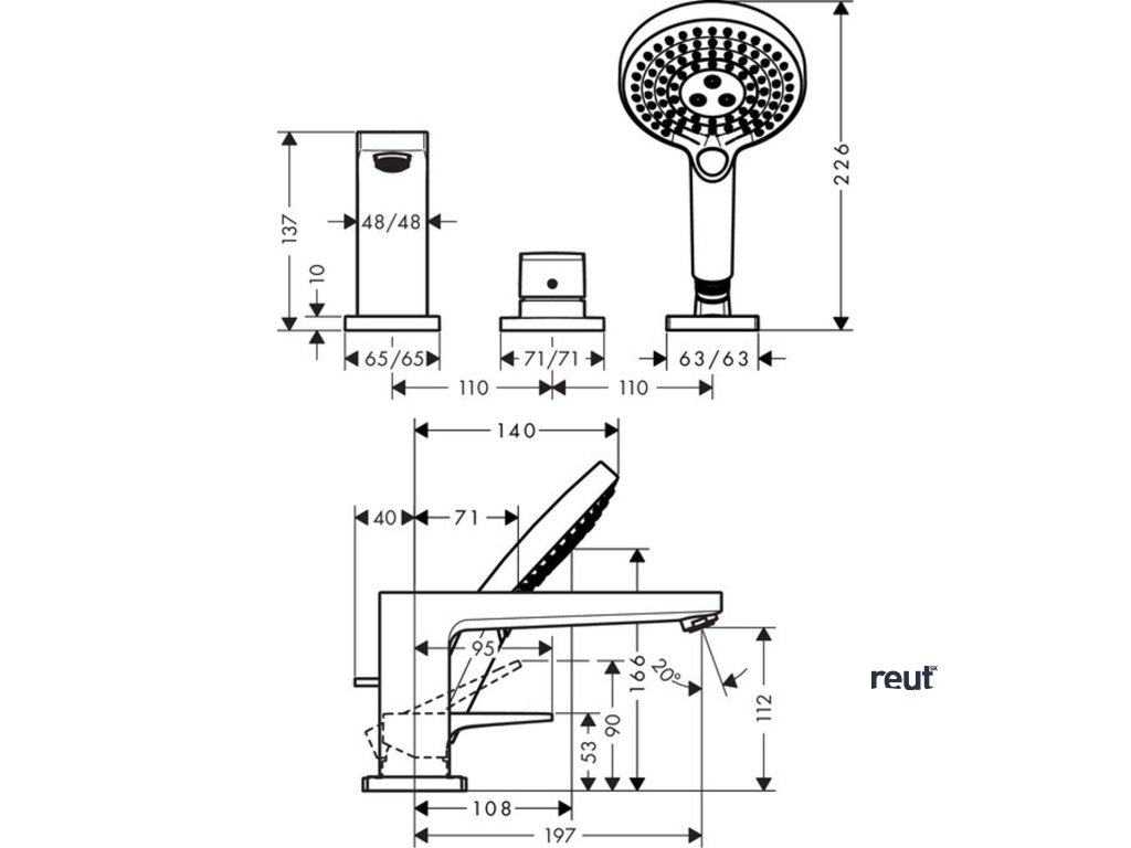 Hansgrohe Metropol Batéria na okraj vane, 3-otvorová inštalácia, chróm 32551000-HG